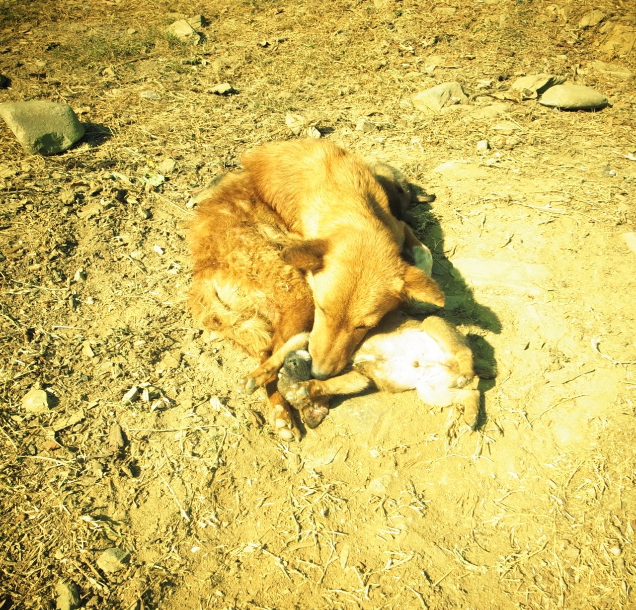 子犬が母親に甘えていた 幸せそうな様子にこち …
